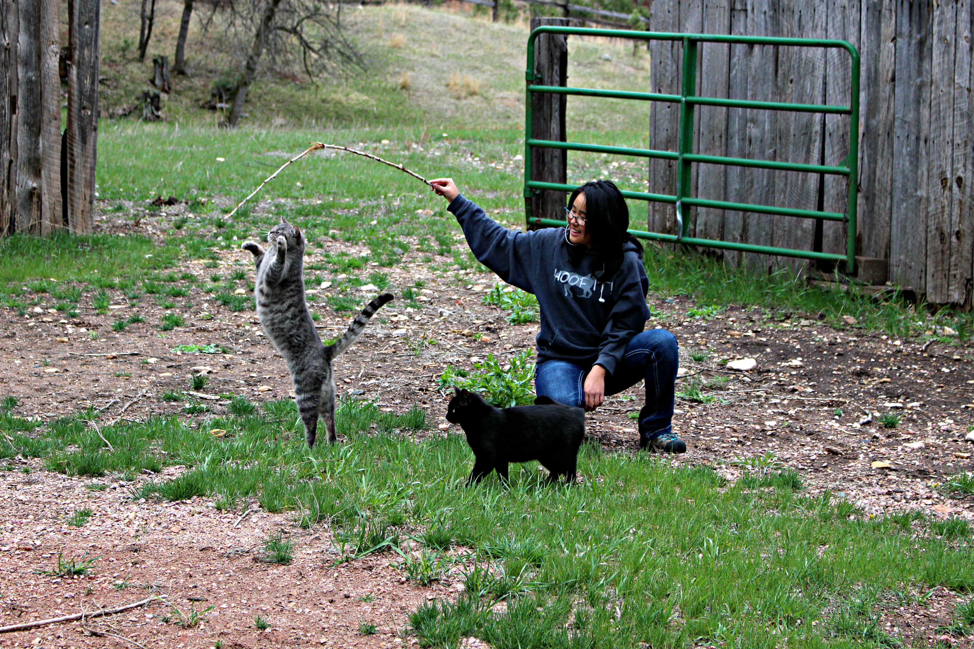 I got home today from work and found Anna out in the corral playing with her kitties – What fun she (and they!) were having, and what fun it was to watch the antics! The little spectacle was, well…the cat’s meow.