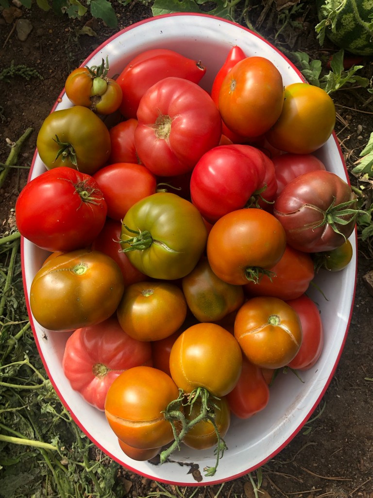We were again under a freeze warning last night, so I spent my afternoon trying to seal the hoop house, harvesting tomatoes, basil, cabbage, and cutting flowers for some last bouquets of the season. The colors never cease to amaze me, and the kitchen was chaos when I finally called it a day.