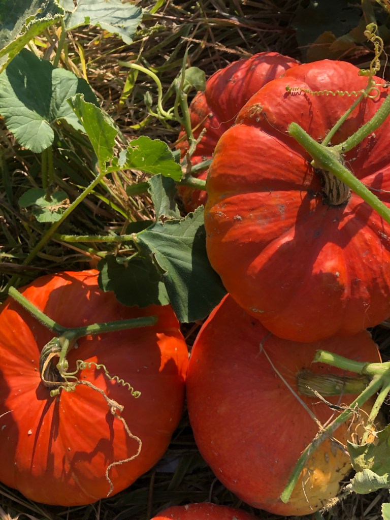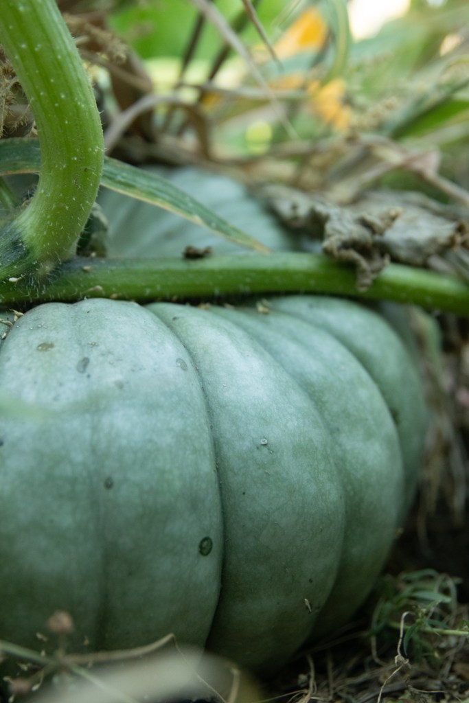 A nearly-failed pumpkin patch was the crowning glory of my gardening endeavors this year, saved by my chickens and a good turn of the weather sometime mid-August, and finally – finally! – the overgrown tangle has lit up with all shades of scarlet and orange and gold and blue, with a couple green ones I’m still cheering on. Irksomely, incidentally, but maybe not surprisingly, for about the last month a song has been going through my head on repeat: “Hello, country bumpkin! Fresh as frost out on the pumpkin! Somethin’, somethin’, somethin’, somethin’! La-la, hello, country bumpkin!” That’s all I know of that song. The rhymes are distressing and the tune insufferable, but it gets into my head, somehow, and it stays there.