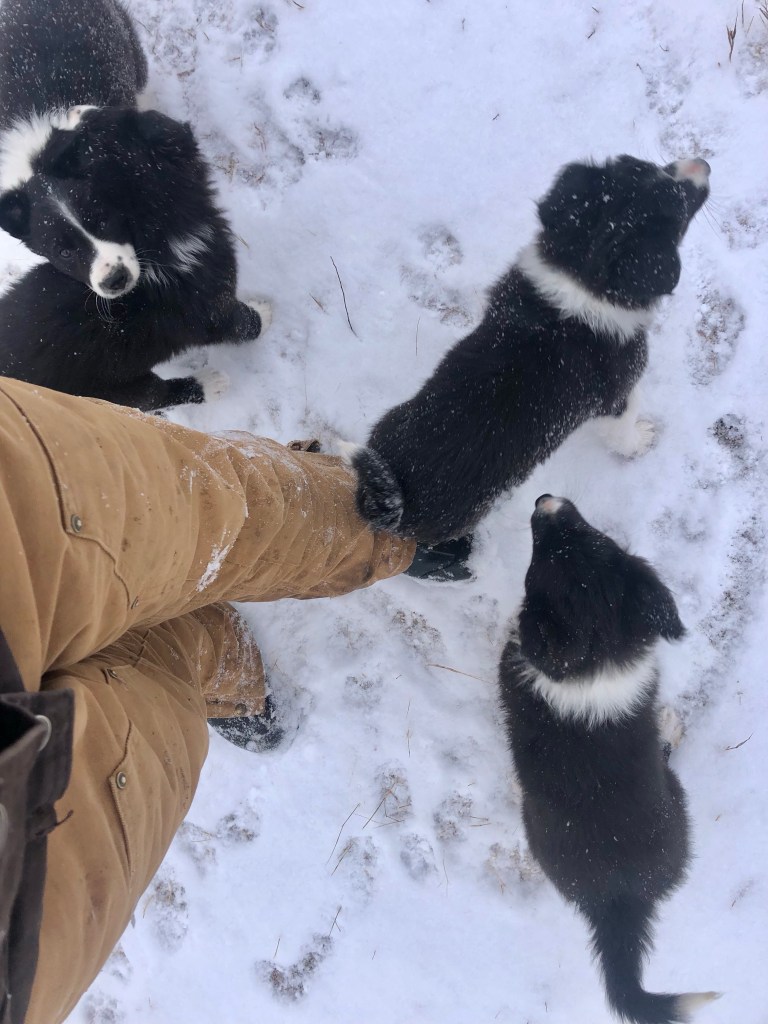 We gave her colostrum and graduated her to the calf warmer around lunchtime, where she stayed for the rest of the day and the night, and early the next morning when Brad did a heifer check he stuck her with her mom. When I was stomping around doing my chores, I poked my head into the shed. Mama cow stared at me rather defiantly, and behind her were four little knock-kneed legs. I waited, not sure it was the right calf, but the sweet brockle face peeked around mama’s hind legs. Her little ears, frosted with white hair, were perky. She took a couple hesitant steps, and then made a little baby frisk, all four legs coming off the ground in a clumsy expression of infant playfulness. It warmed the heart on a frigid day.