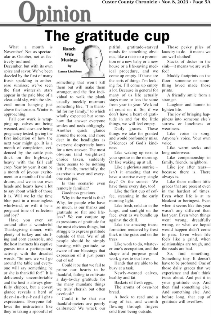 Originally printed in the Custer County Chronicle on April 3, 2024