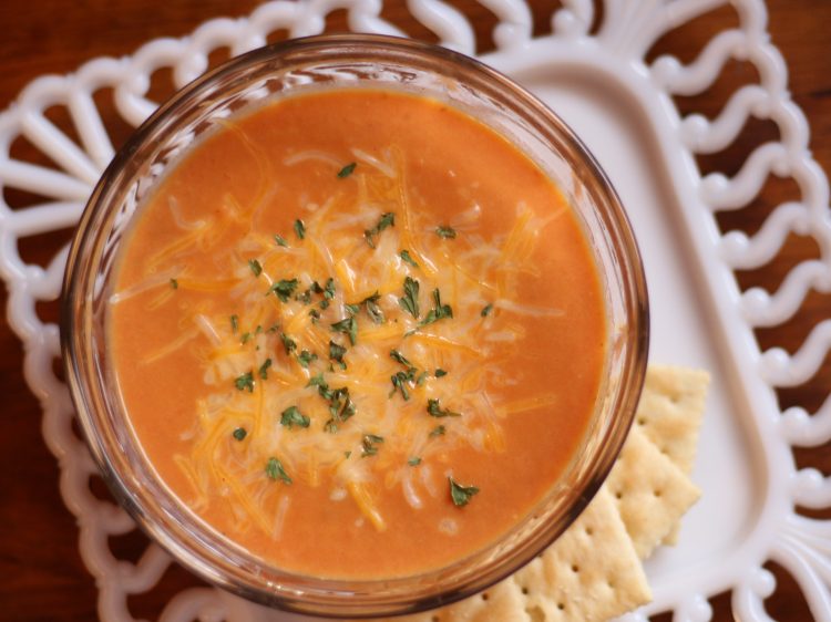 Preparation – Combine pumpkin, tomatoes, and milk in a saucepan and whisk together. If using diced tomatoes, puree with an immersion blender before combining with other ingredients. For a thicker soup, use less milk. For a thinner soup, use more. Add chicken bouillon to taste (I used about a half tablespoon, or less, probably – less is better. You can always add more). Add dried garlic, dried minced onion, pepper, salt if desired, and savory. I’m generous with the garlic and onion. Again, add to taste. Heat and let simmer until all the dried ingredients are tender, about 10 minutes, stirring frequently. Ladle into bowls and garnish with shredded cheese and dried parsley.