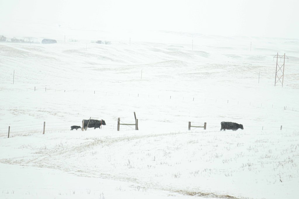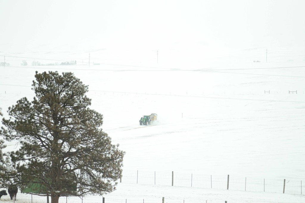 Fortunately we weren’t dealing with frigid cold, but the gale-force winds drove the snow into ground blizzards and drifted cattle away from shelter. We went out to feed cows early afternoon and look over everything, and ended up on a wild goose chase to pair up a couple of older cows (who should know better) with calves they had left in the storm, before we bogged down in a drift a mile from the house. Sometimes it is just one thing after another on a day like yesterday.